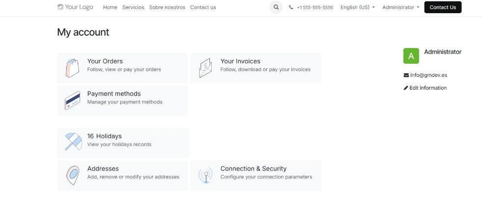 GM Portal Holidays amplía las funcionalidades del portal estándar de Odoo, permitiendo a los empleados gestionar sus solicitudes de ausencias de forma autónoma.