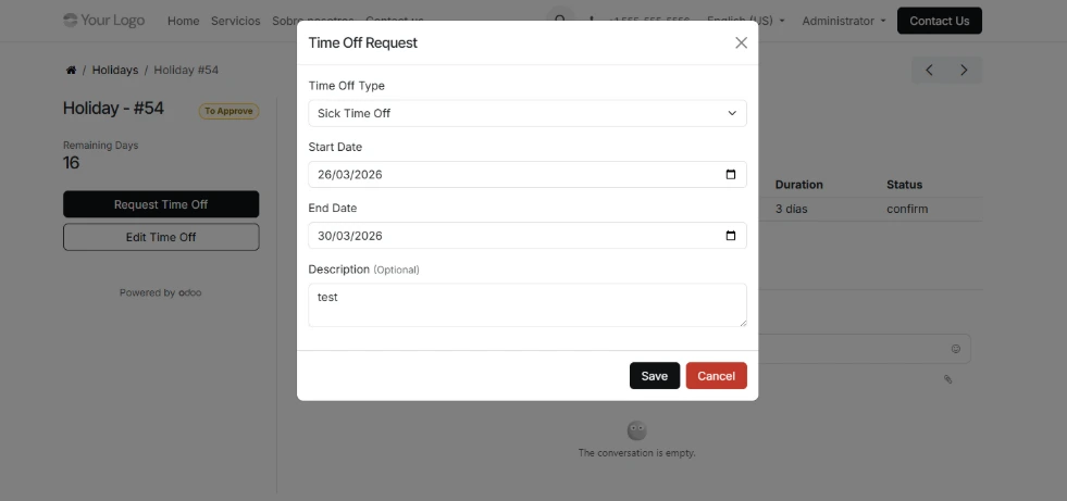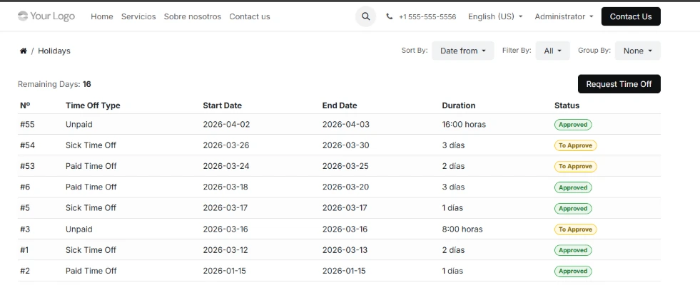 Gestiona las ausencias de tus empleados directamente desde el portal de Odoo.